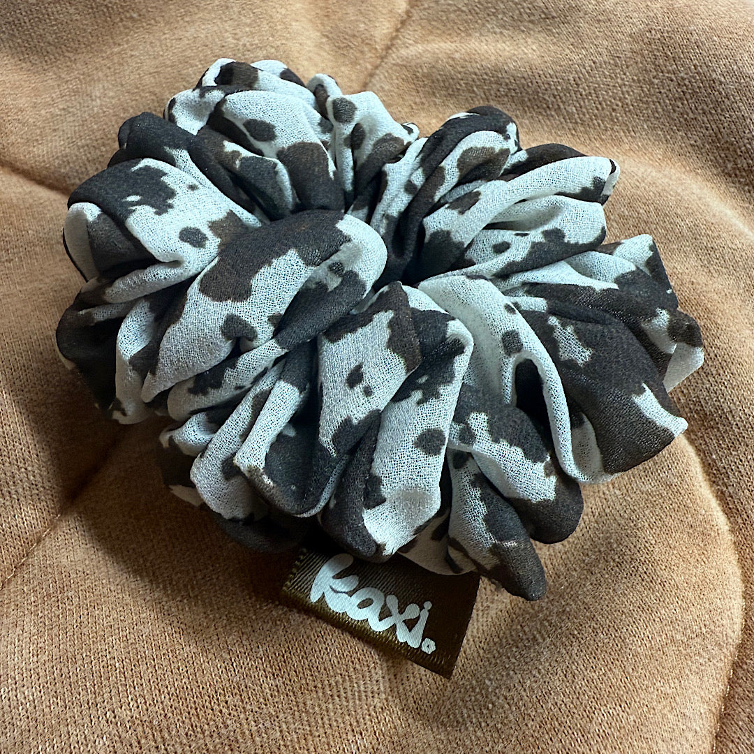 Add a playful, western-inspired touch to any hairstyle with our Bullseye Scrunchie! Featuring a classic cow-print pattern, this scrunchie is soft, stretchy, and gentle on hair while keeping your locks secure.