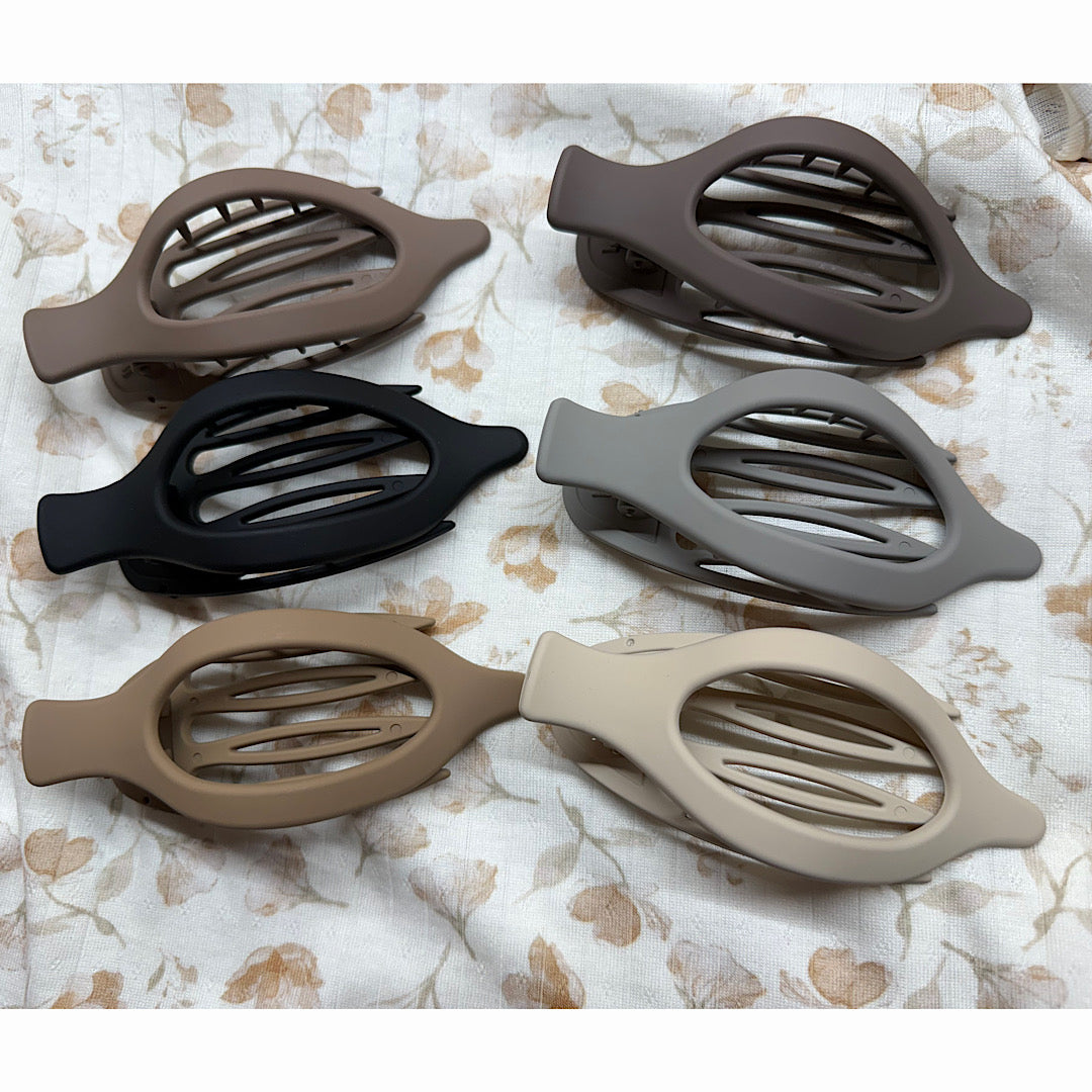 Simplify your style with our Flat Out Clip. This neutral claw clip lays smoothly against your hair, keeping strands in place while maintaining a streamlined, chic appearance. Perfect for casual days or finishing off a retro-inspired look.