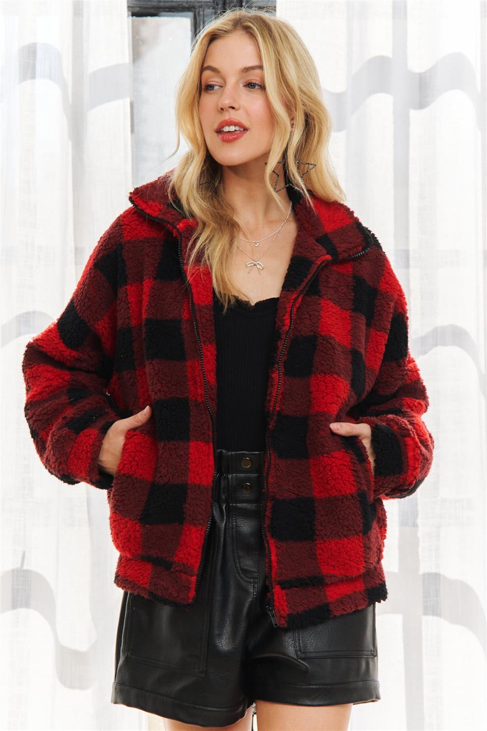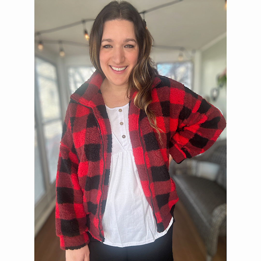 This Plaid Perfection Jacket is the perfect combination of style and comfort! Featuring a bold red and black plaid print, this jacket is made from soft sherpa material for ultimate warmth and coziness. Stay on trend and stay warm with this must-have jacket!