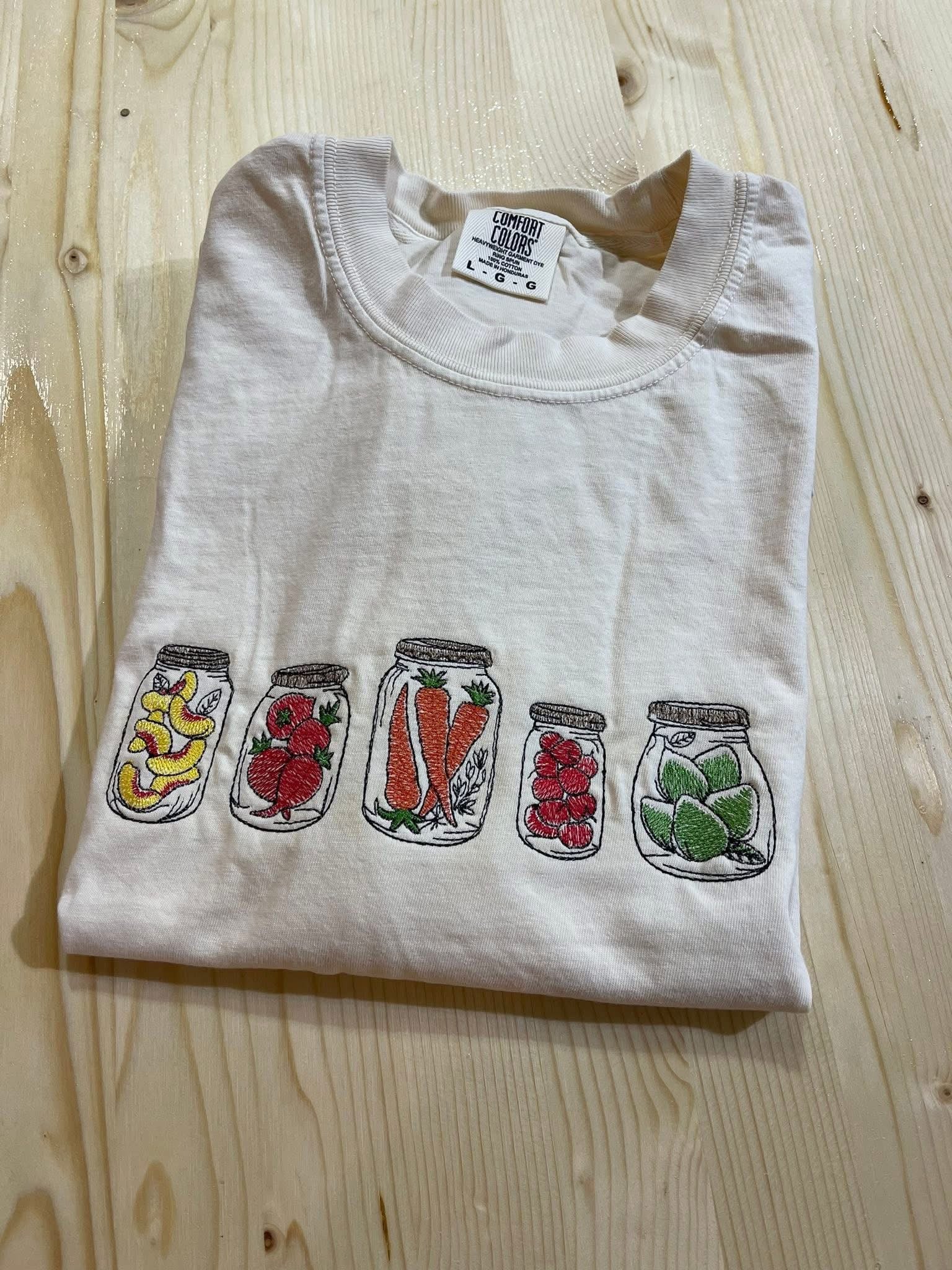 Capture the warmth and charm of homemade goodness with the Preserved Perfection Tee. This Comfort Colors graphic tee features beautifully embroidered canning jars, adding a rustic, nostalgic touch to your wardrobe. Made with soft, durable fabric, it’s perfect for cozy days spent at home or out in the garden. Whether you’re enjoying a cup of tea or running errands, this tee brings the comfort of home wherever you go.
