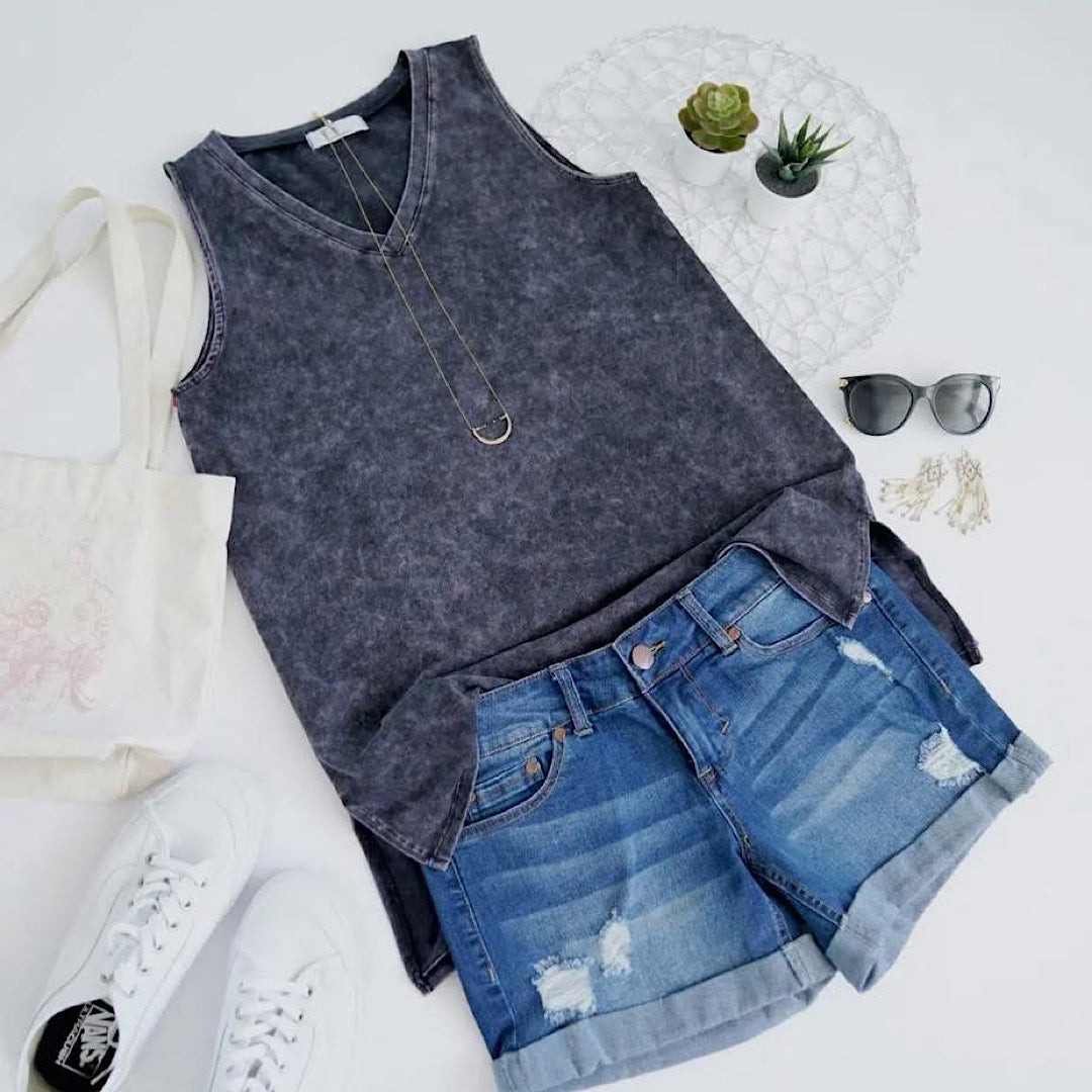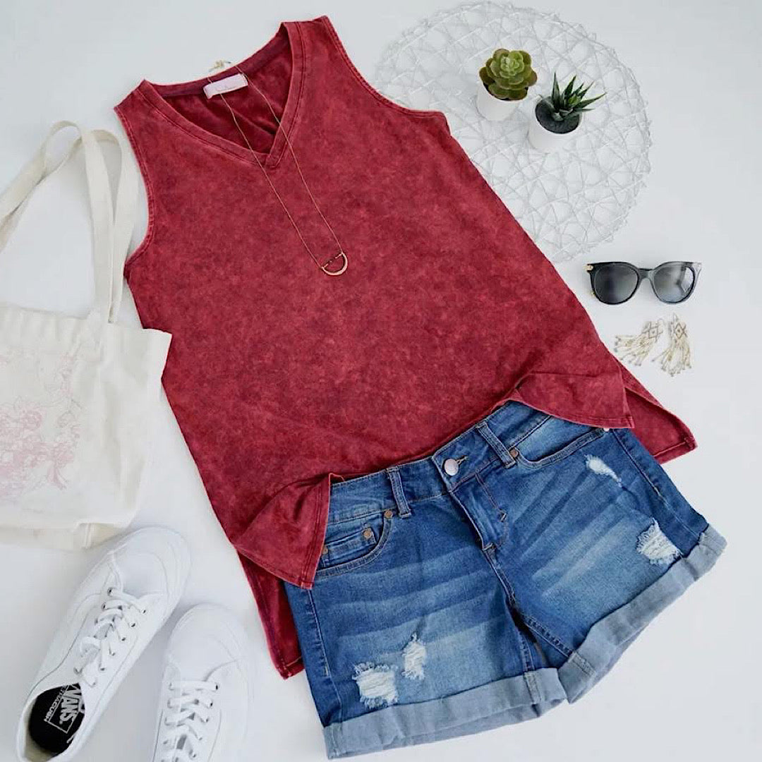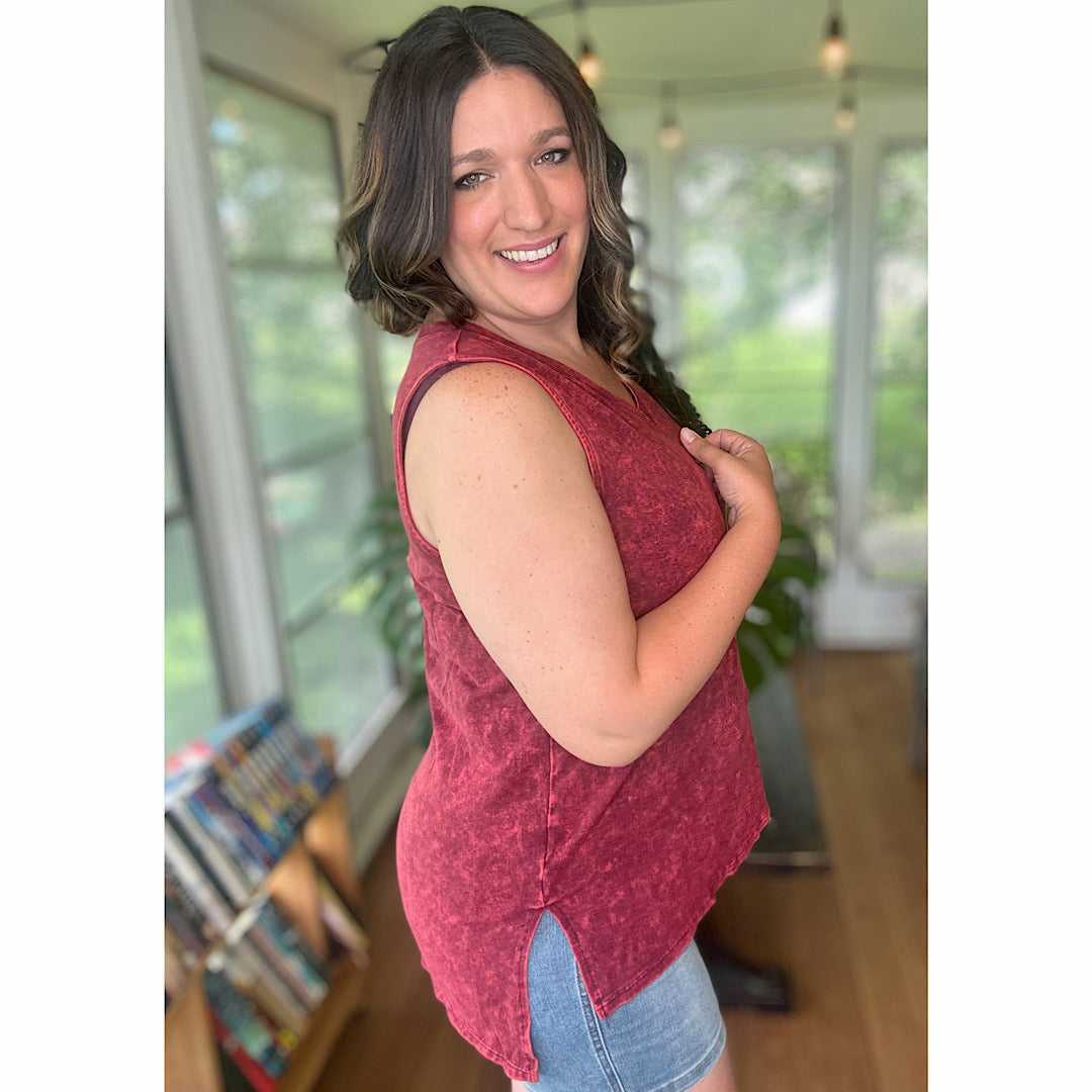This Zenana mineral wash tank is made for easy days and bold layering moments. With its flattering curvy fit and washed, lived-in feel, it’s a must-have for summer and beyond.
